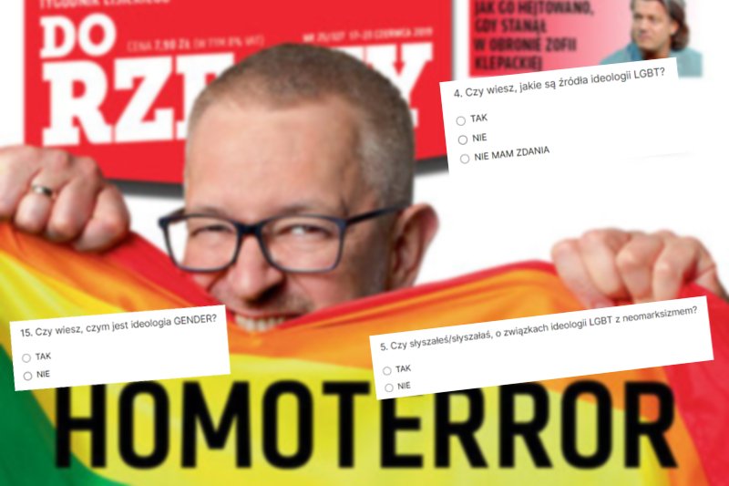 No i tu już nie można odpowiedzieć "sorry, ale pytanie zawiera kłamstwo". Dalej nie jest lepiej. Ankieterzy z Do Rzeczy pytają o związki ideologii LGBT z marskizmem, przypadki naruszania wolności sumienia przez aktywistów ideologii LGBT czy pytanie o możliwość krytykowania ideologii LGBT.