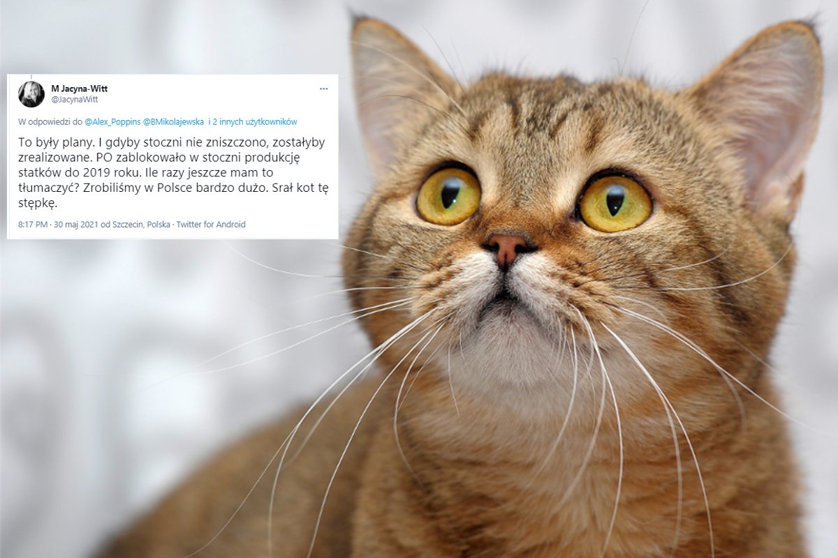 Radna PiS Małgorzata Jacyna-Witt wypowiedziała się wczoraj o rządowym programie, który stoi nietknięty od czterech lat. To stępka (oś konstrukcyjna szkieletu) promu w szczecińskiej stoczni. Stwierdziła ona, że PiS zrobił już w Polsce bardzo dużo i "srał kot tę stępkę".