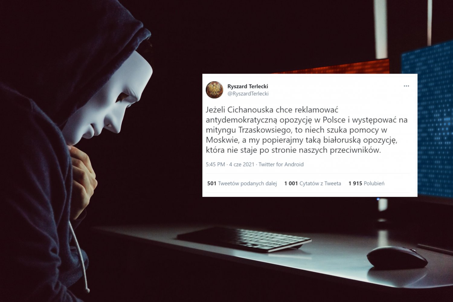 Hakerzy z Rosji odpowiedzialni za włamanie na skrzynkę mailową Michała Dworczyka zamieścili w internecie kolejne pogróżki. Z listu wynika, że jeżeli Polska będzie wspierać demokratyczną opozycję na Białorusi, to nadal będą pozwalać Ryszardowi Terleckiemu wypowiadać się na Twitterze.