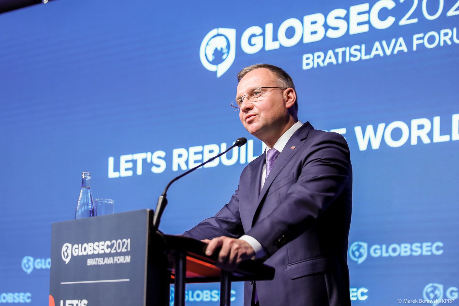 Andrzej Duda przebywa w Bratysławie na konferencji Globsec poświęconej bezpieczeństwu międzynarodowemu. W swoim przemówieniu wytłumaczył światu, że jego zdaniem spadek zachorowań na COVID-19 to nie tyle zasługa szczepień, ile dobrej pogody.