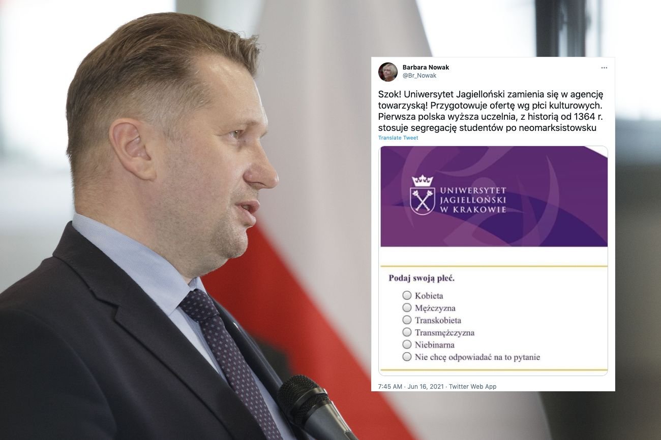 No to wyjaśnione! Minister Czarnek z właściwą sobie mądrością rozsupłał kontrowersje, jakie narosły wobec ankiety Uniwersytetu Jagiellońskiego na temat równego traktowania studentów. Wśród pytań pojawiło się takie o płeć (z wyróżnieniem transpłciowości, co może mieć znaczenie w kwestii dyskryminacji), co wywołało reakcję kuratorki Barbary Nowak.