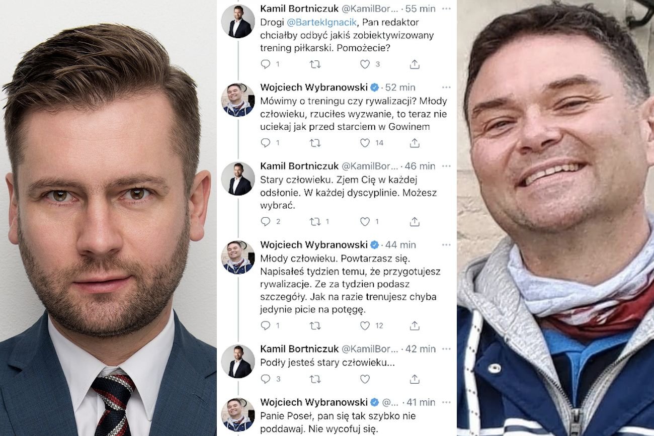 Jak być prawdziwym mężczyzną w internecie? Należy zacząć od piłki nożnej, potem zasugerować tchórzostwo, a na koniec wyzwać oponenta od "zakompleksionego grubaska" - a wszystko to podczas umawiania się na solo. To wszystko właśnie zrobili na Twitterze poseł Porozumienia Kamil Bortniczuk i prawicowy redaktor Wojciech Wybranowski.