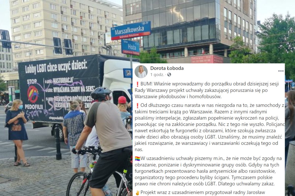 - Gdyby na tych furgonetkach prezentowano hasła antysemickie albo rasistowskie, organizatorzy tego procederu byliby ścigani - pisze Łoboda. - Tymczasem polskie prawo nie chroni należycie osób LGBT. Dlatego uchwalamy zakaz.