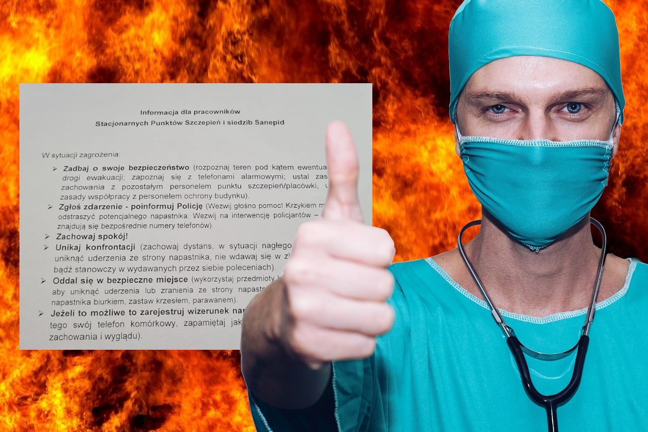 Po podpaleniu punktu szczepień i sanepidu w Zamościu lekarze, pielęgniarki i inne osoby pracujące przy szczepieniach mogli przez chwilę poczuć się zagrożeni. Na szczęście na reakcję władz nie trzeba było długo czekać. Od dziś pracownicy punktów szczepień dokładnie wiedzą, jak uchronić się przed pożogą - a także nożem, bronią palną i każdym innym zagrożeniem.