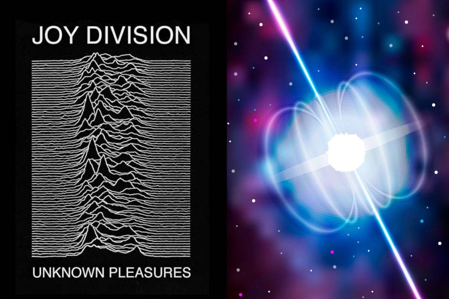 Przypomnijmy, że na okładce albumu "Unknown Pleasures" z 1979 roku znalazła się fotografia fal radiowych młodego pulsara z gwiazdozbioru Liska. W chwili robienia zdjęcia okres obrotu CP-1919 wynosił zaledwie 1,3373 sekundy, a długość jego impulsu nie była większa niż 0,04 sekundy.