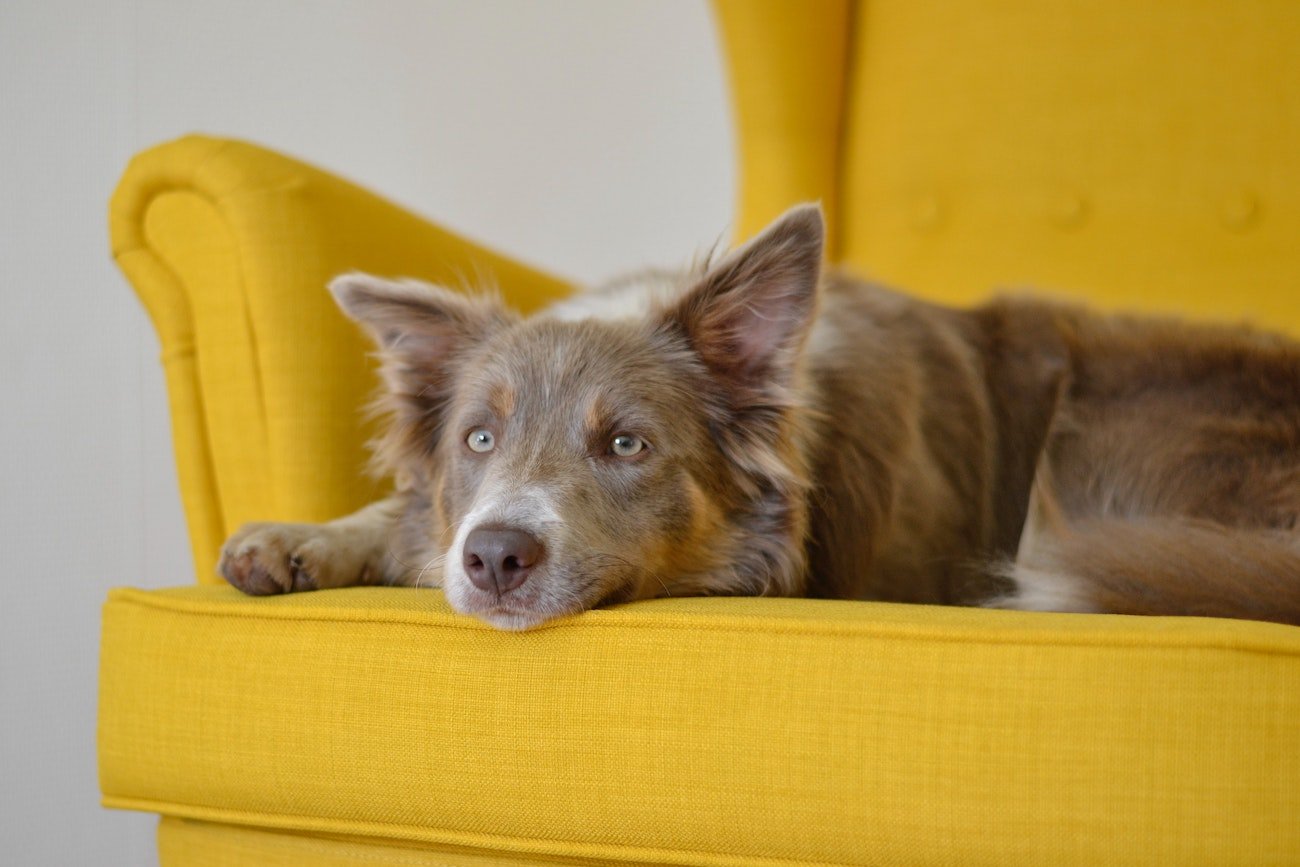 Piesek Mirek, zwany Mirasem, leży na fotelu, ponieważ nie wolno mu wchodzić na łóżko. Piesek Mirek potrafi respektować granice i doskonale wie, że zgoda na zajęcie jednego mebla nie oznacza, że wolno ładować mu się już na wszystkie.