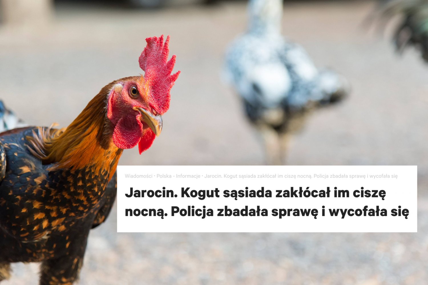 To jest ASZdziennik, ale w Jarocinie naprawdę wezwano policję do głośnego koguta. Resztę zmyśliliśmy.