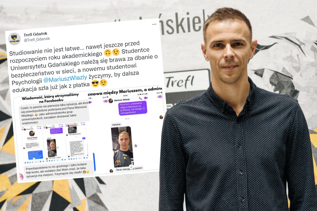 38-letni zawodnik Trefla Gdańsk rozpoczął właśnie studia na kierunku psychologia na Uniwersytecie Gdańskim . Klub pogratulował studentce czujności w dbaniu o bezpieczeństwo w sieci, a Mariuszowi życzył, by "dalsza edukacja szła jak z płatka".