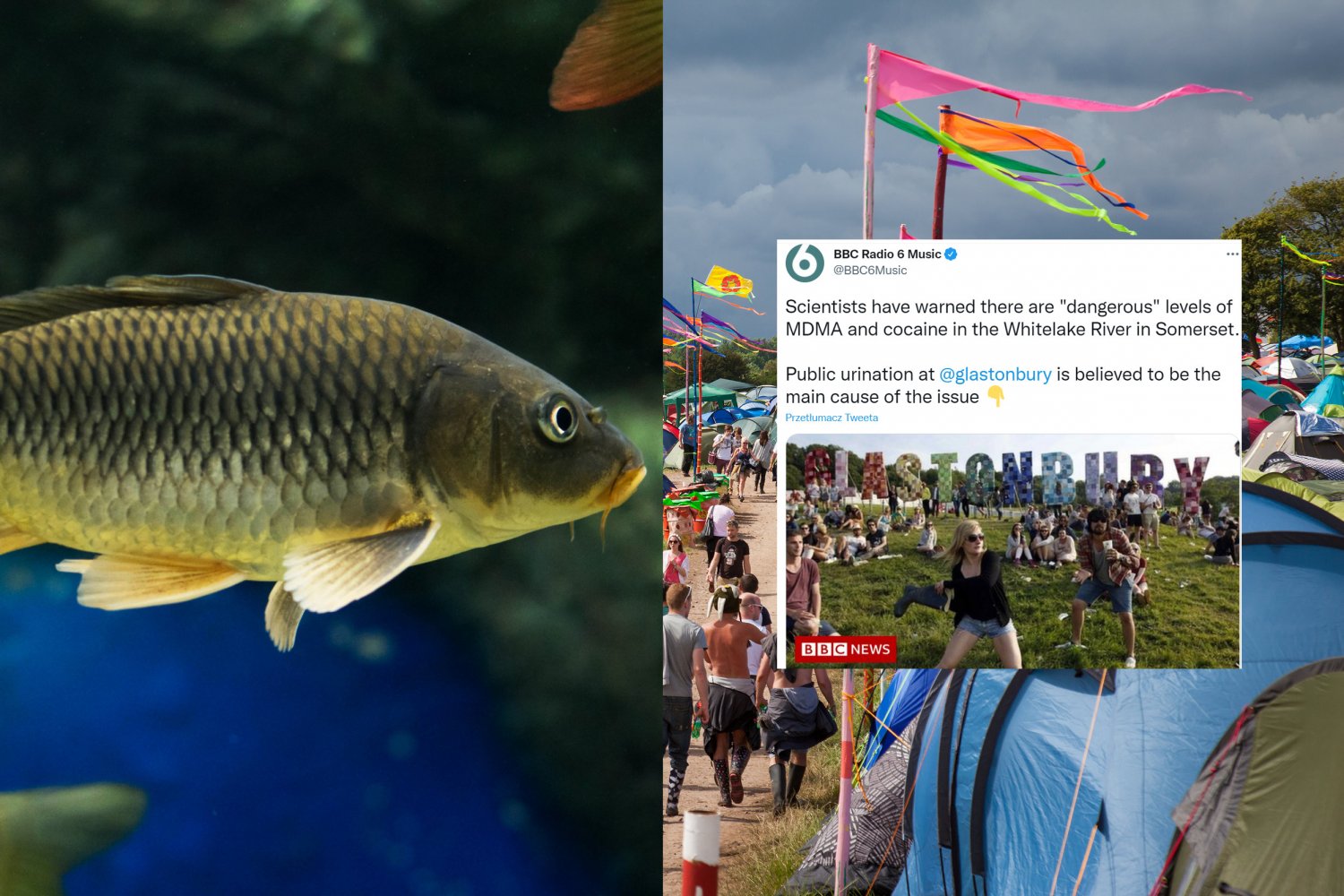 Niepokojące wyniki badania rzeki przepływającej przez teren festiwalu Glastonbury. Naukowcy stwierdzili, że w wodzie występuje niepokojące stężenie kokainy i MDMA. Trwa ustalanie, skąd lokalne ryby mają dostęp do nielegalnych substancji.