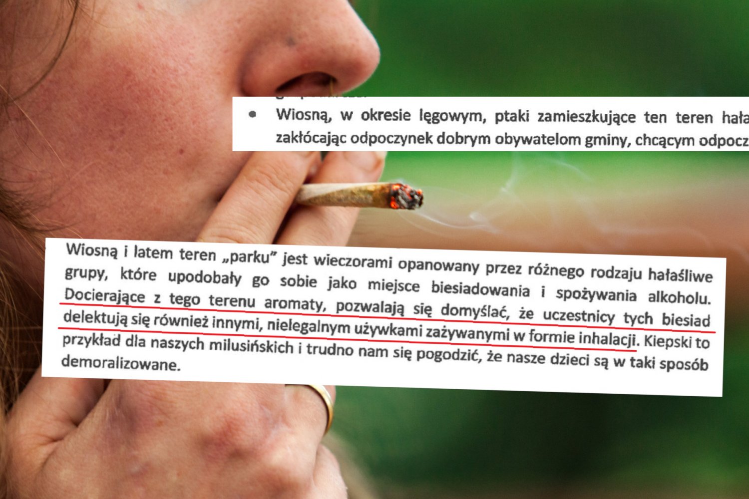 "Wiosną i latem teren parku jest wieczorami opanowany przez różnego rodzaju hałaśliwe grupy, które upodobały go sobie jako miejsce biesiadowania (...) Docierające z tego terenu aromaty, pozwalają się domyślać, że uczestnicy tych biesiad delektują się również innymi, nielegalnymi używkami zażywanymi w formie inhalacji. Kiepski to przykład dla naszych milusińskich i trudno nam się pogodzić, że nasze dzieci są w taki sposób demoralizowane".