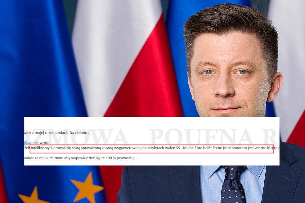 W internecie pojawiły się maile, w których ktoś podpisany "Michał Dworczyk" przypomina, że w życiu warto kierować się zasadami. Zasadami wypisanymi na nożach żołnierzy SS.