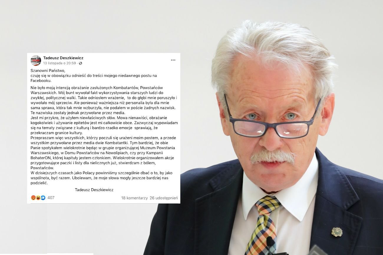 Mamy zwycięzcę! Konkurs na najgorsze przeprosiny roku 2021 w cuglach wygrał właśnie Tadeusz Deszkiewicz, doradca prezydenta Andrzeja Dudy i prezes Polskiego Radia RDC. Pan Tadeusz wyjaśnił swój wpis, w którym nazwał kombatantki Powstania Warszawskiego "zdemenciałymi archeocelebrytkami".