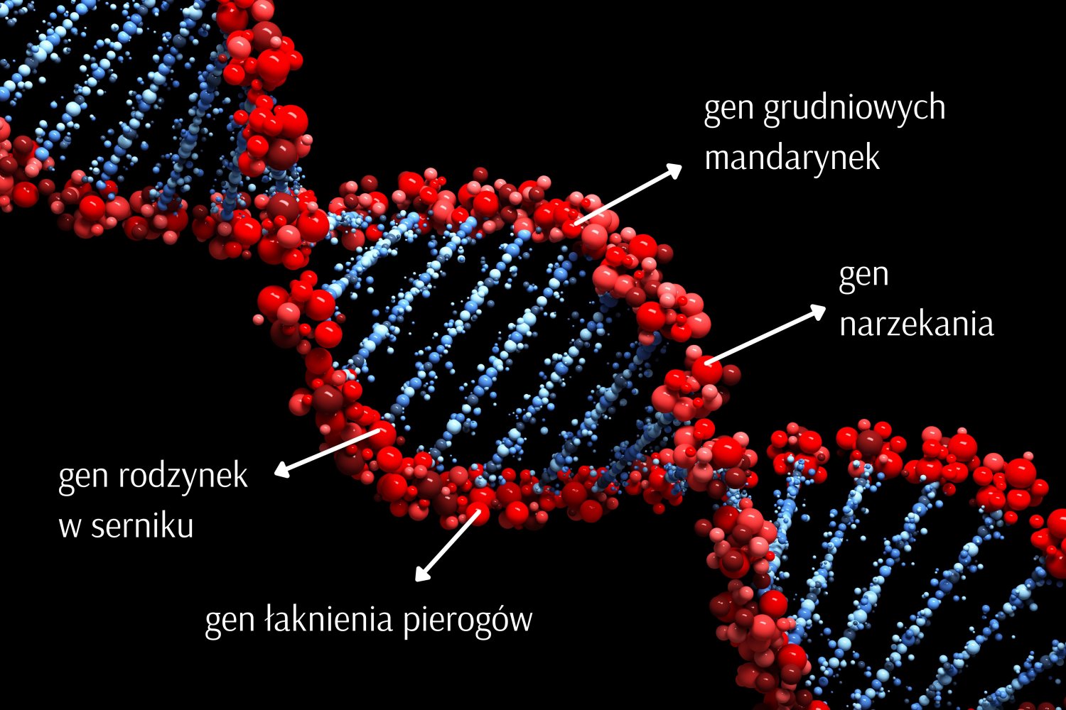 I tak, na Genom Polaka (GP) składają się między innymi: gen łaknienia pierogów, gen kombinowania, gen grudniowych mandarynek oraz gen malkontenctwa i narzekania.