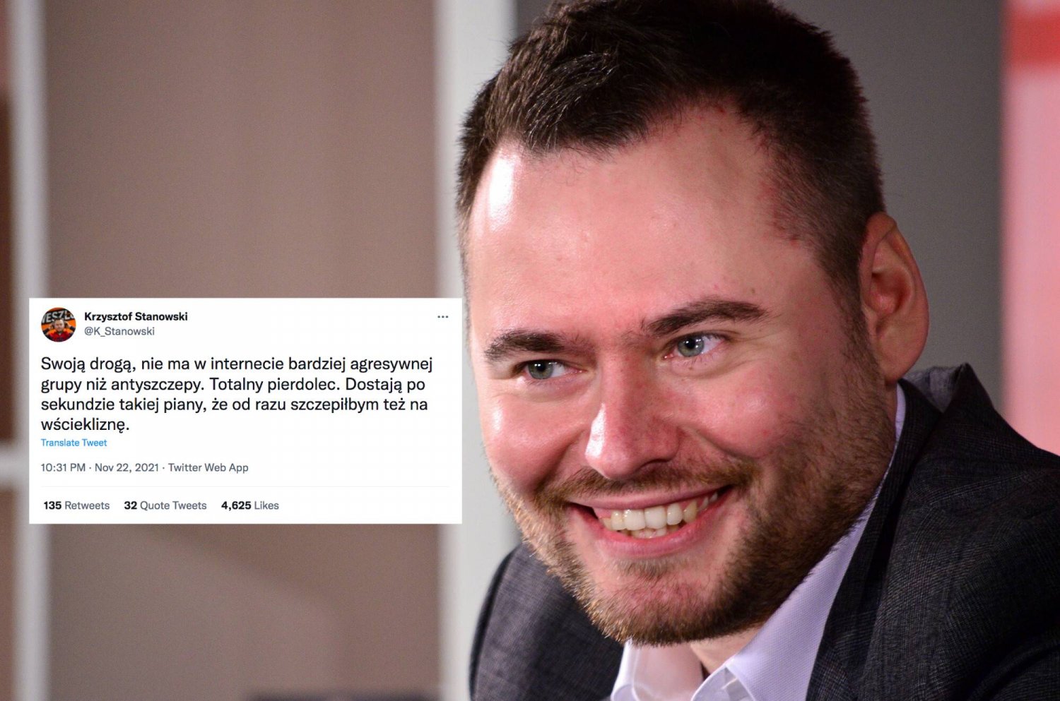 Znany dziennikarz sportowy, a od pewnego czasu także i komentator społeczny, przez wielu centrystów uważany za "głos rozsądku" - Krzysztof Stanowski - swoim wpisem na Twitterze podpadł grupie, którą uważa za najbardziej agresywną w sieci: antyszczepionkowcom.