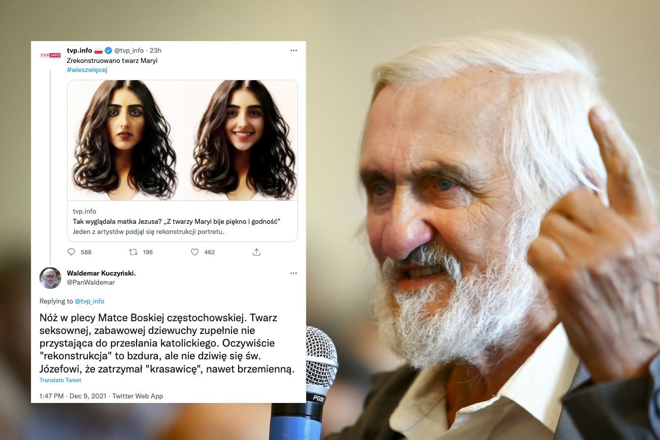 Pilne! Marian Waldemar Kuczyński odniósł się na Twitterze do ważkiej kwestii, jaką jest ładna buzia Maryi. Kuczyński to były minister przekształceń własnościowych w rządzie Mazowieckiego oraz współzałożyciel Unii Wolności, natomiast Maryja to ta z "rekonstrukcji", którą stworzył Átila Soares da Costa Filho, a dalej podało TVP Info.