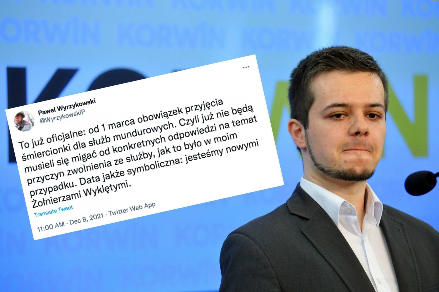 Czyżby historia zataczała koło? Do takich wniosków doszedł Paweł Wyrzykowski z Konfederacji. Działacz uważa, że obowiązek szczepień zmieni antyszczepionkowych mundurowych w nowych Żołnierzy Wyklętych.