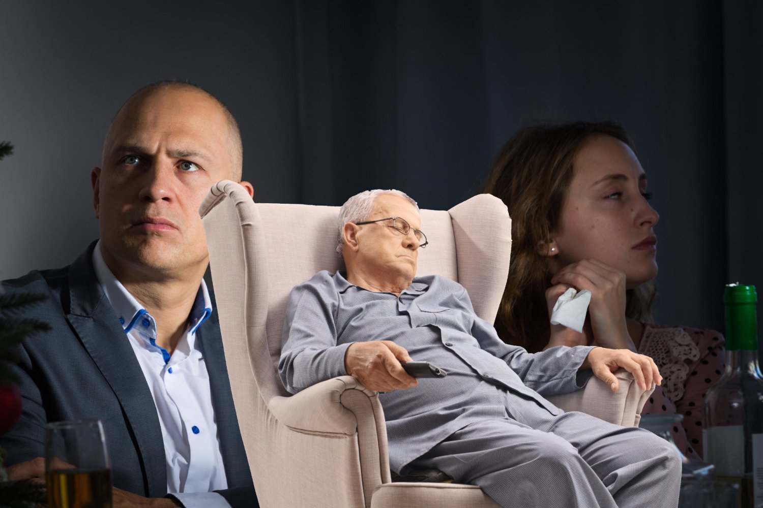Ojciec kurczowo trzyma pilota i chrapiąc zarzeka się, że przecież cały czas ogląda.