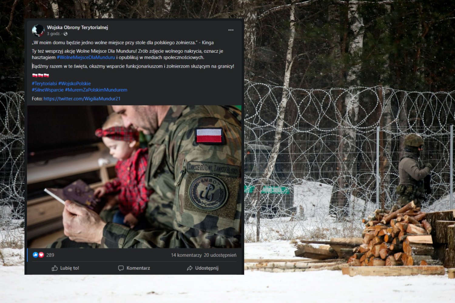 Jedną z najpiękniejszych tradycji wigilijnych w Polsce jest pozostawianie wolnego miejsca dla zbłąkanego wędrowca. W tym roku Wojska Obrony Terytorialnej zachęcają, aby zamiast wędrowców, zaprosić do swoich domów żołnierzy i funkcjonariuszy stacjonujących na granicy i odsyłających ludzi, których zdrowie i życie jest zagrożone.