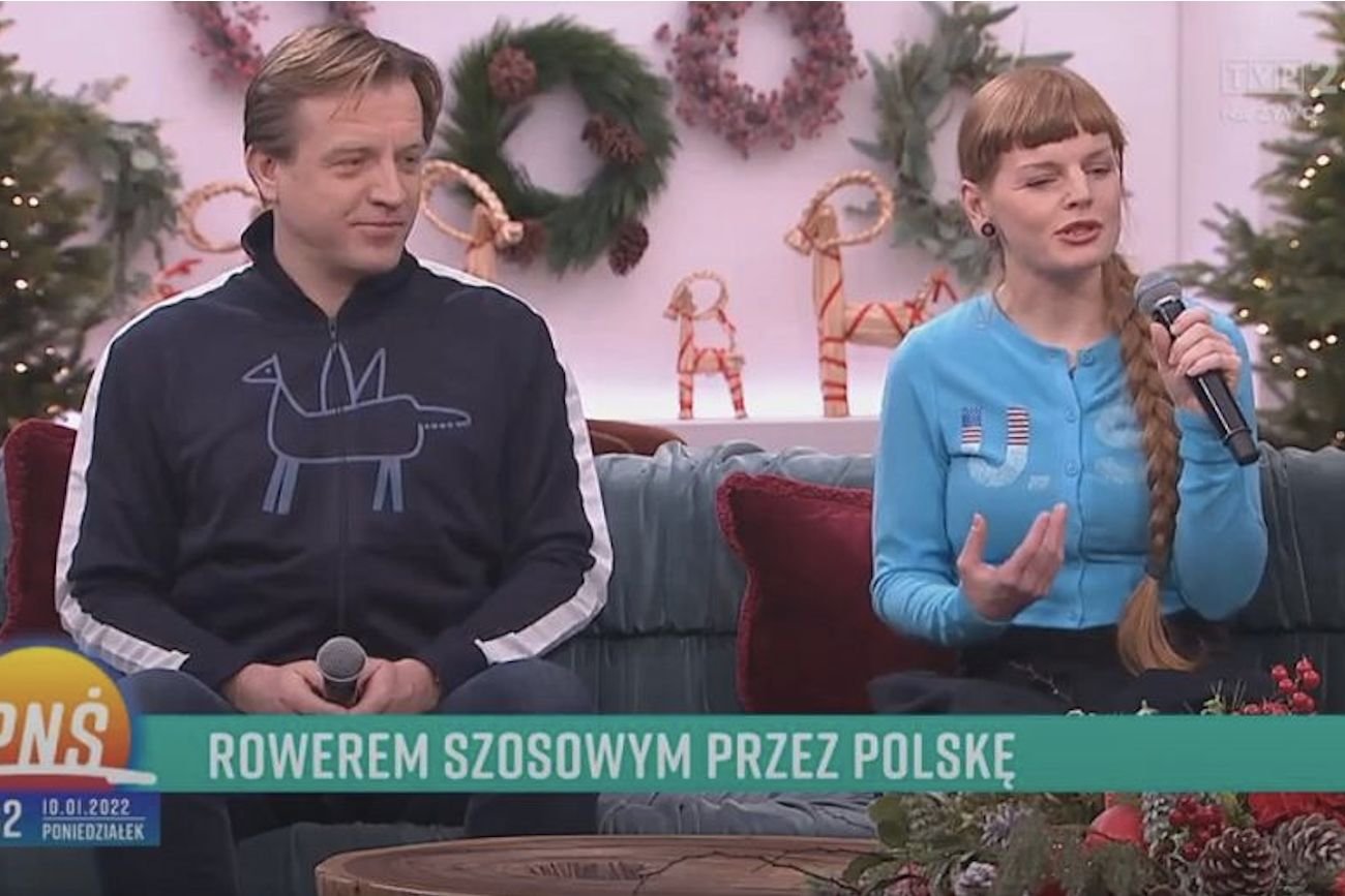 W programie gościli analityczka biznesowa Kamila Pociech i przedsiębiorca Jakub Szalaty, którzy w wolnym czasie uprawiają kolarstwo romantyczne. Opowiadali o swojej pasji ubrani w starannie dobrane stroje: on włożył bluzę z wizerunkiem skrzydlatego konia, ona - sweterek z napisem "US". W co składają się te dwa komunikaty obok siebie? Pomyślcie sami.