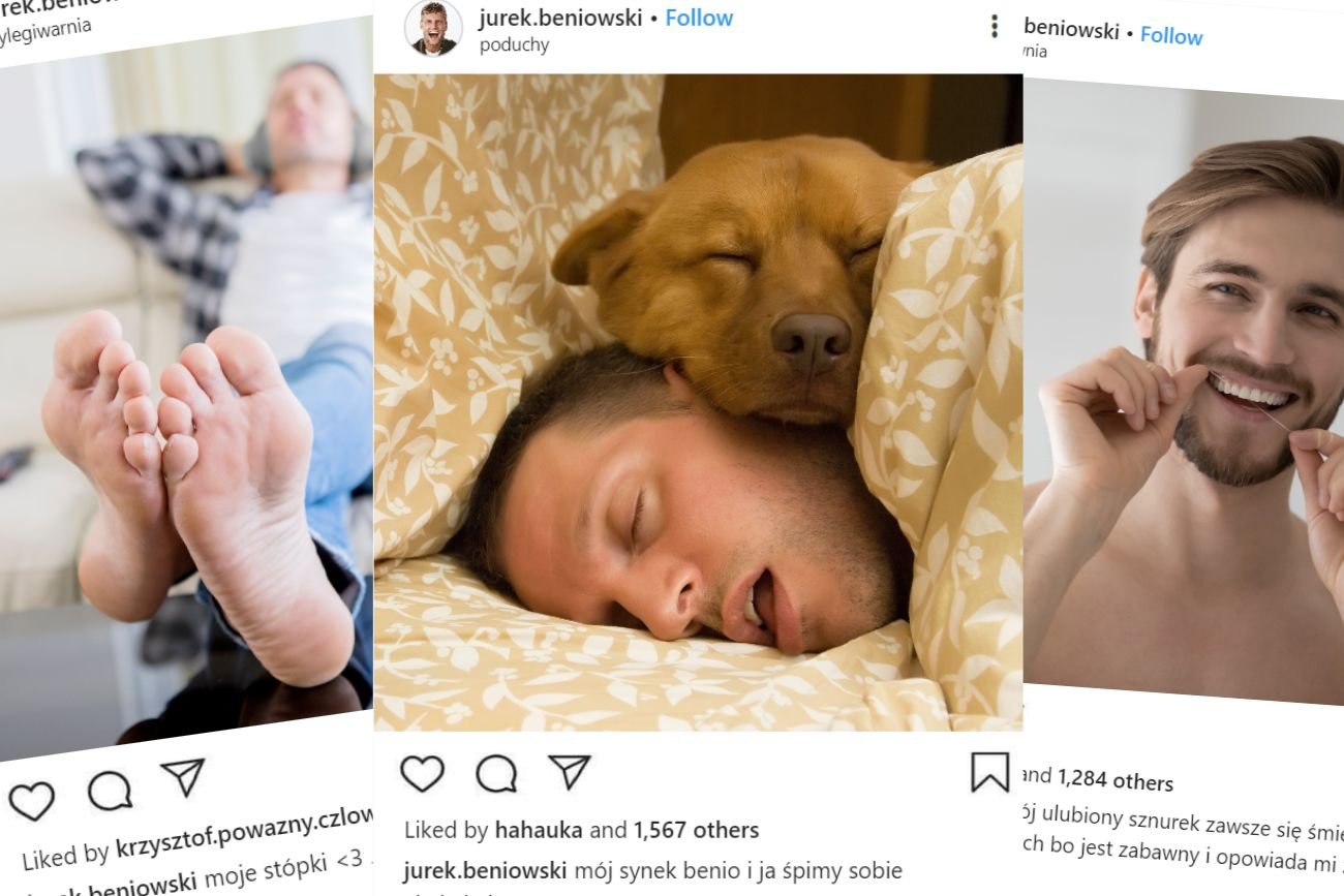 – Benio napisał, że nazywam się Jurek Beniowski, a to i tak najmniej oburzający element tego profilu... Zobaczcie tylko: "hihi tak zakładam sobie rączki za głowę a potem ziewam", "popołudniowa toaleta jestem człowiekiem więc szoruję nos od środka"... Na jednym zdjęciu nawet zapozował ze mną, kiedy spałem.