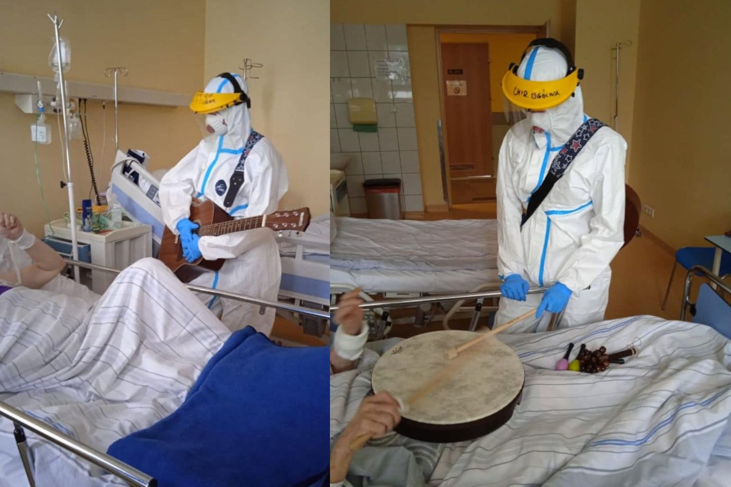 Ta fota szybko stała się obiektem heheszków w internecie, ale prawda jest piękniejsza od szydery. Pani Grażyna, studentka muzykoterapii z Katowic, została wolontariuszką szpitala miejskiego w Zabrzu. W wolnym czasie przychodzi do pacjentów na oddziale covidowym, by poprawić im nastrój śpiewając i grając na instrumentach.