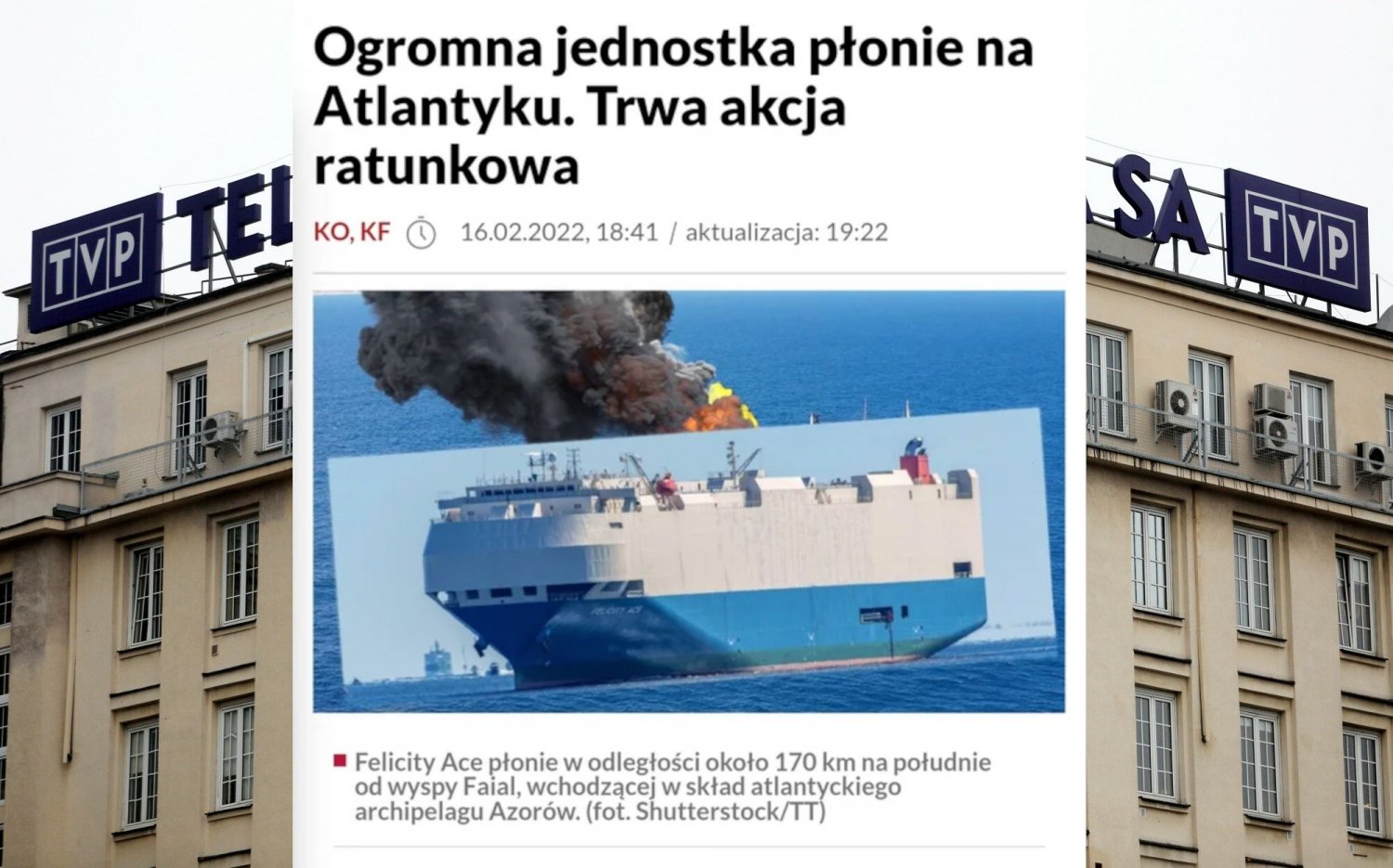 Portal TVP opublikował newsa na temat pożaru na statku handlowym Felicity Ace u wybrzeży Azorów.