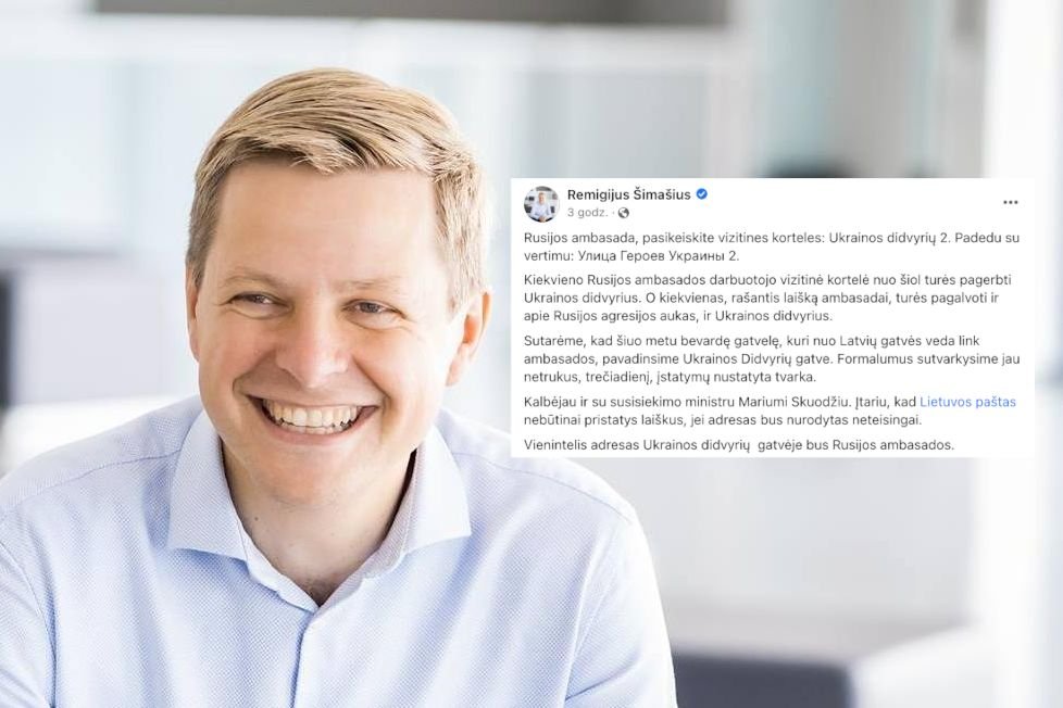 Mer Wilna Remigijus Šimašius wezwał pracowników ambasady Rosji do pilnej wymiany wizytówek. Od teraz będą na nich mieli wzmiankę o bohaterach Ukrainy. Bo prezydent nadał ulicy, na której mieści się ambasada, nazwę "Bohaterów Ukrainy". Miło!