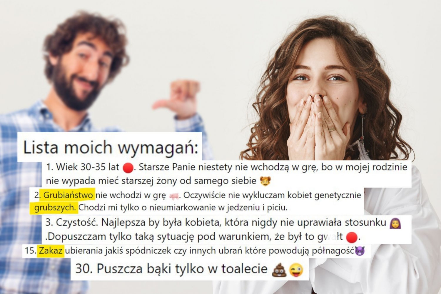 Bo przecież skoro gość tyle wymaga od przyszłej partnerki, to sam z pewnością też jest białym krukiem na rynku matrymonialnym.