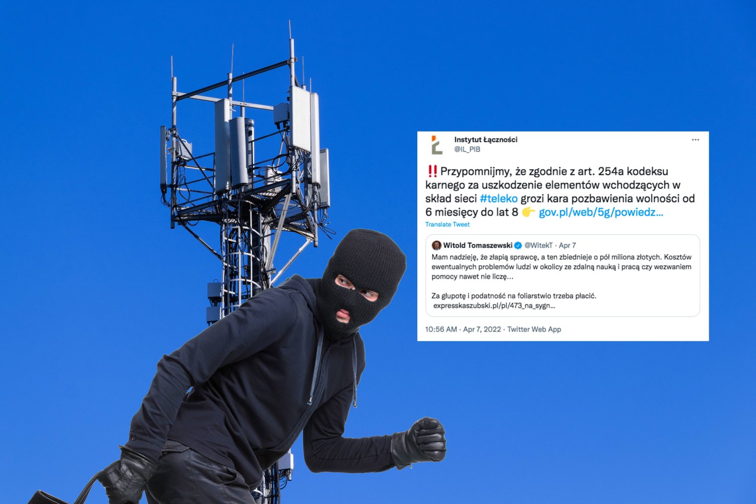 - Mam nadzieję, że złapią sprawcę, a ten zbiednieje o pół miliona złotych. Kosztów ewentualnych problemów ludzi w okolicy ze zdalną nauką i pracą czy wezwaniem pomocy nawet nie liczę... Za głupotę i podatność na foliarstwio trzeba płacić - napisał na Twitterze Tomaszewski.