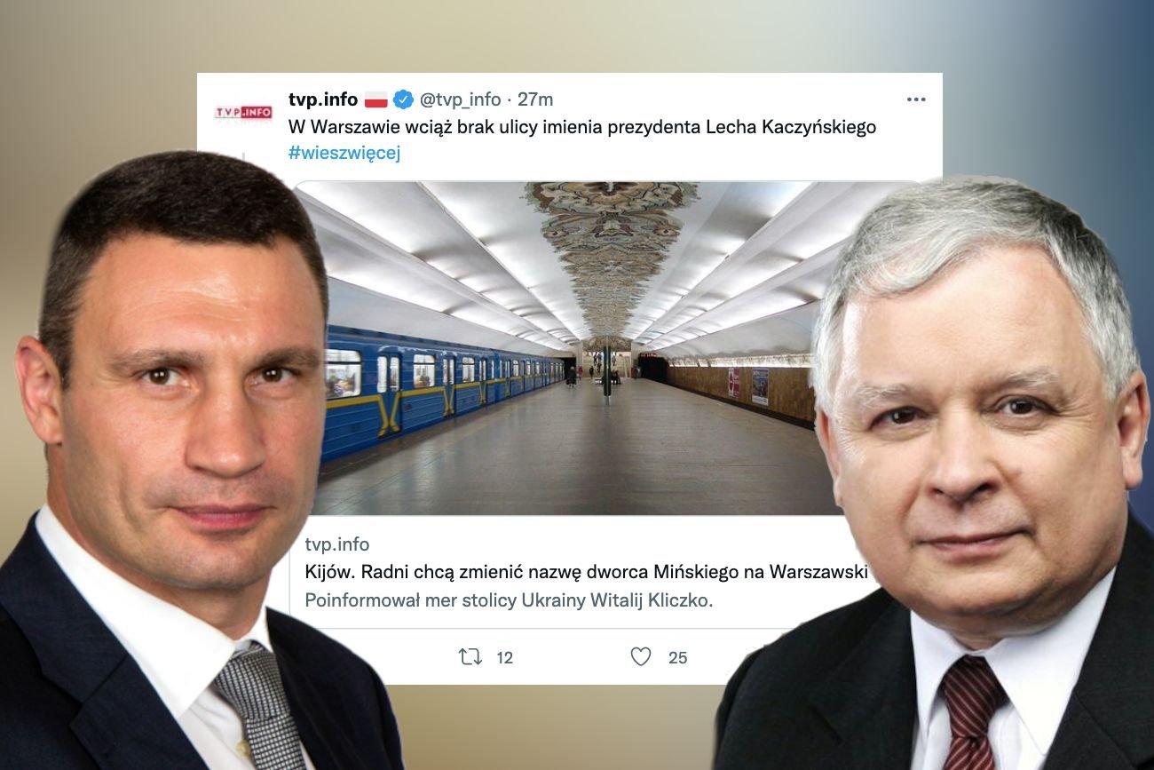 Jak żyć, gdy radni Kijowa beztrosko przemianowują dworce i stacje metra, a wielcy Polacy nadal nie mają ulicy swojego imienia? To pytanie musiano zadać sobie w TVP Info, kiedy podawano dalej informację o pewnym projekcie władz ukraińskiej stolicy.