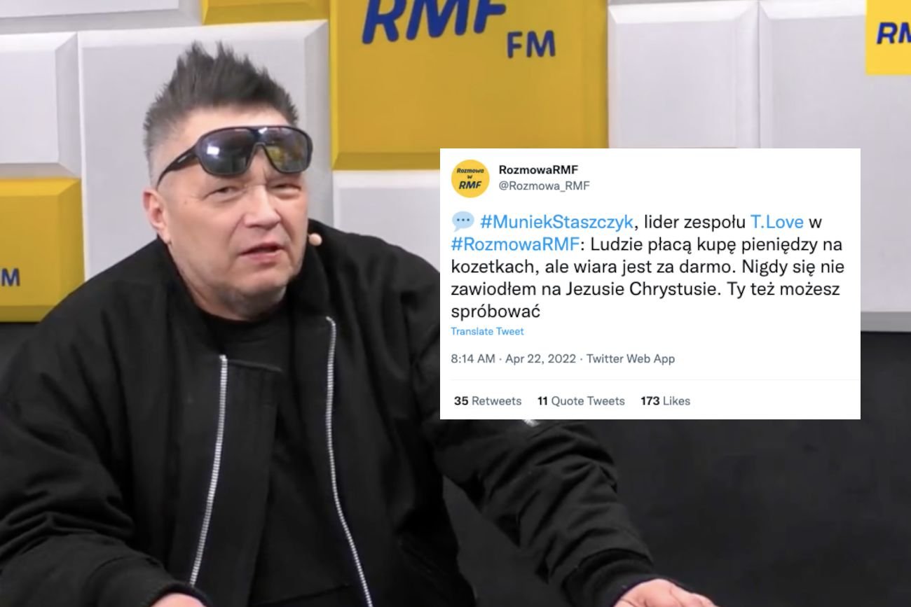 - Ludzie płacą kupę pieniędzy na kozetkach, ale wiara jest za darmo - wyjaśnił na antenie radia RMF FM Muniek, który nie wie, że w gabinetach terapeutycznych nie ma już żadnych kozetek, tylko fotele-uszaki i pudełko trzywarstwowych chusteczek do nosa.