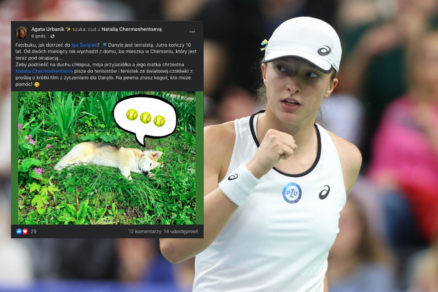 - Fejsbuku, jak dotrzeć do Igi Świątek? - pyta na Facebooku pani Agata, a my wraz z nią. - Danylo jest tenisistą. Jutro kończy 10 lat. Od dwóch miesięcy nie wychodzi z domu, bo mieszka w Chersoniu, który jest teraz pod okupacją... Żeby podnieść na duchu chłopca, moja przyjaciółka a jego matka chrzestna Natalia Chermoshentseva pisze do tenisistów i tenisistek ze światowej czołówki z prośbą o krótki film z życzeniami dla Danylo. Na pewno znasz kogoś, kto może pomóc! - czytamy w załączonym poniżej wpisie.