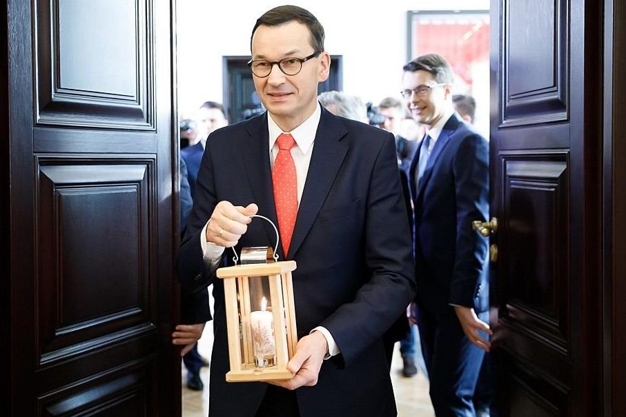 - Dziś symbolicznie wychodzimy z jaskiń domów i biur prosto do światłości – powiedział premier Mateusz Morawiecki, po czym wziął kostkę brykietu do ręki, a biskup polowy wojska polskiego pokropił ją podpałką grillową.