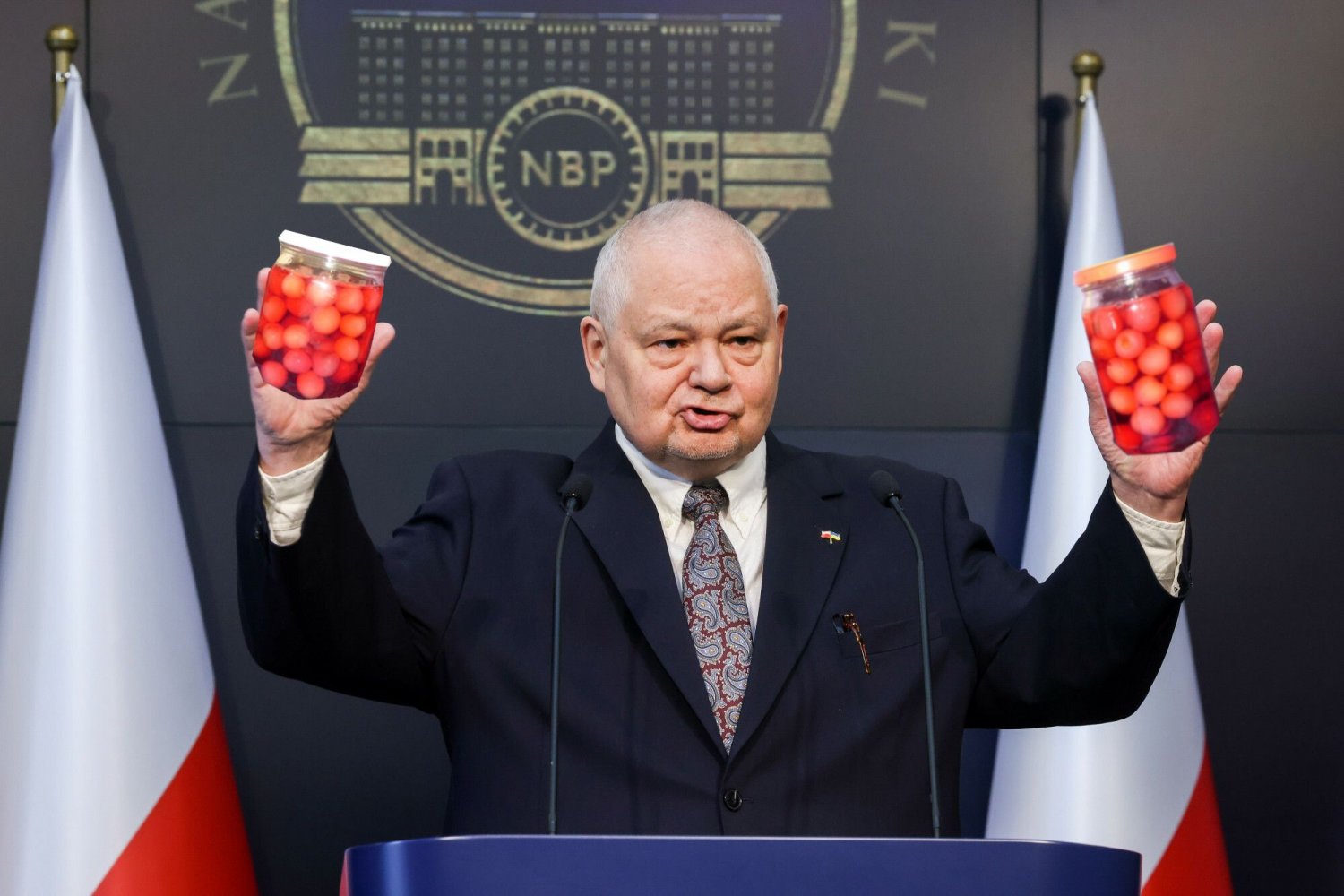 - Pojawiam się przed państwem jako szpak - tymi słowami szef NBP rozpoczął dzisiejszą konferencję prasową. Adam Glapiński poinformował, że Polska rozpoczyna ważną transformację. Wszystkie rezerwy w złocie zostaną do końca roku zastąpione ekwiwalentem w słojach pysznego kompotu z czereśni.