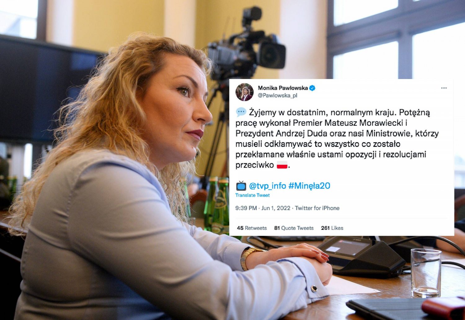 - Żyjemy w dostatnim, normalnym kraju - napisała na swoim Twitterze Pawłowska, chwaląc przy okazji obecny rząd i krytykując zachowanie opozycji. - Potężną pracę wykonał Premier Mateusz Morawiecki i Prezydent Andrzej Duda oraz nasi Ministrowie, którzy musieli odkłamywać to wszystko, co zostało przekłamane właśnie ustami opozycji i rezolucjami przeciwko - skwitowała Pawłowska linkując twitterowe konto TVP Info.