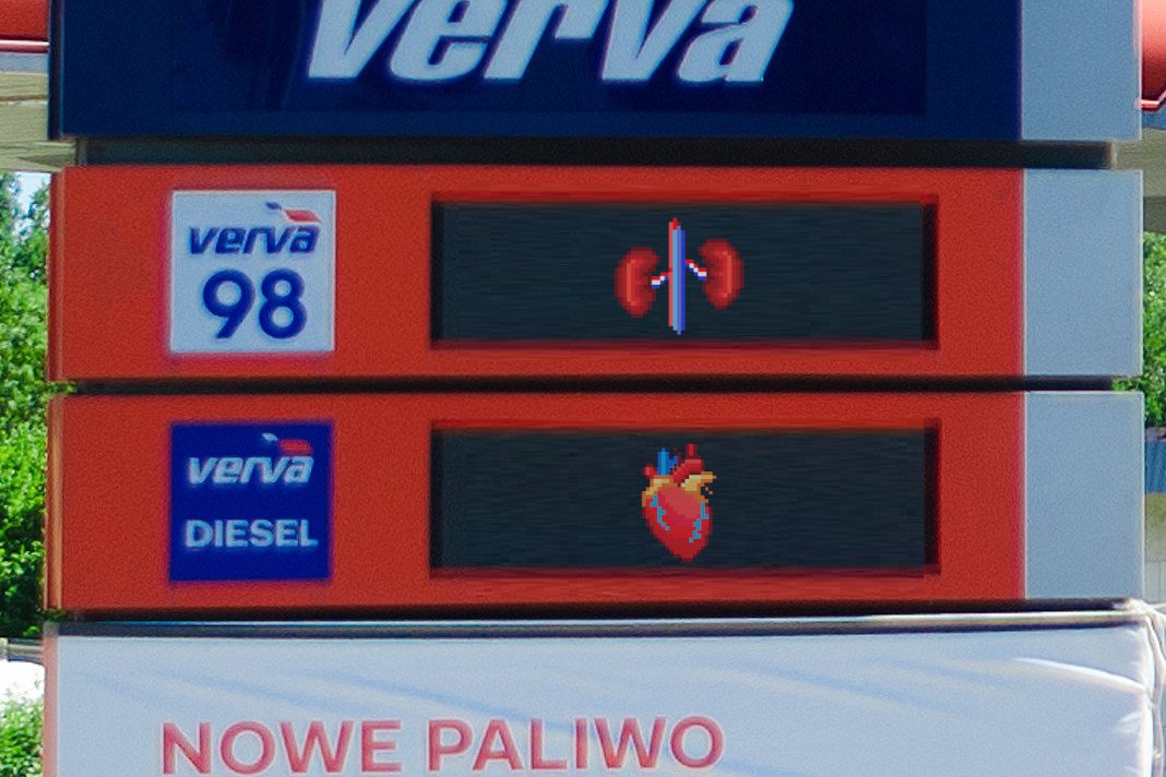 Zmiany na stacjach paliw Orlenu. W kilkudziesięciu stacjach w całej Polsce koncern testuje wyświetlacze dostosowane do rosnących cen paliwa. Nowe instalacje na pylonach pokazują cenę za litr paliwa w organach ludzkiego ciała, w tym nerkach i gałkach ocznych.