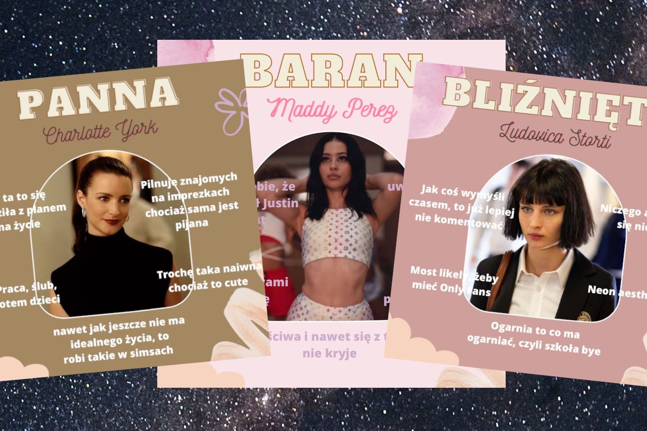Według jungowskich psycholożek wyróżnia się takie kobiece archetypy jak amazonka, puella aeterna czy królowa śniegu. Według zwykłych lasek wyróżnia się natomiast takie jak Jules z "Euphorii", Effy ze "Skinsów" i Charlotte z "Seksu w wielkim mieście". Już dziś możesz sprawdzić, która z nich to tak naprawdę ty. Wystarczy, że znasz swój znak zodiaku.