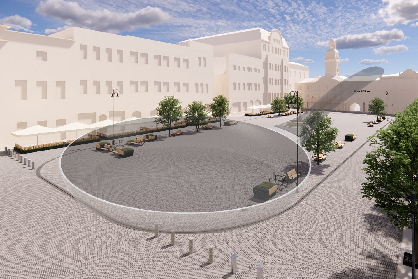 - Przedstawiamy Państwu wizualizację rynku w Cieszynie po rewitalizacji - napisał Zarząd Dróg w Cieszynie w informacji o budowie patelni. - Już wkrótce, po długim weekendzie, teren wewnętrznej płyty rynku zostanie ogrodzony i zaczną się roboty związane ze ściągnięciem kostki granitowej - zagroził.