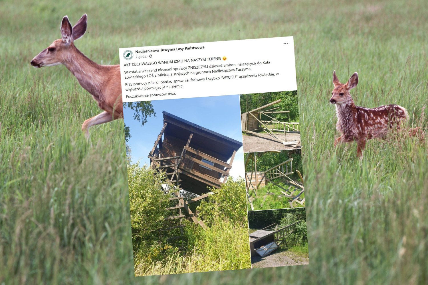 Dziwne! Nieznani sprawcy na terenie Nadleśnictwa Tuszyma powalili dziesięć ambon łowieckich. Nie znamy intencji tych wandali. Być może chcieli pozbyć się drapieżników z lasu? A może to myśliwi pomylili je z dzikiem i postrzelili?