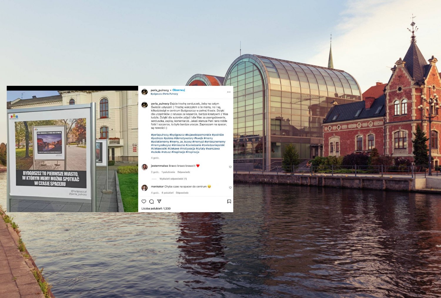 Profil Bydgoszcz Perła Pułnocy jest miejscem, gdzie pojawiają się liczne memy komplementujące to miasto i przybliżające jego specyficzną charakterystykę.