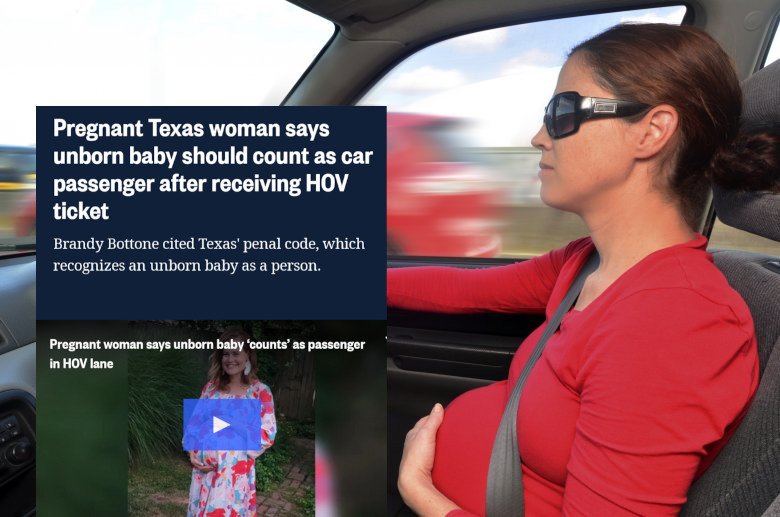 Pani oznajmiła jednak policjantom, że od czasu wyroku ws. Roe vs Wade płód jest już traktowany jako osoba. A zatem w jej aucie są dwie osoby: ona i jej dziecko.