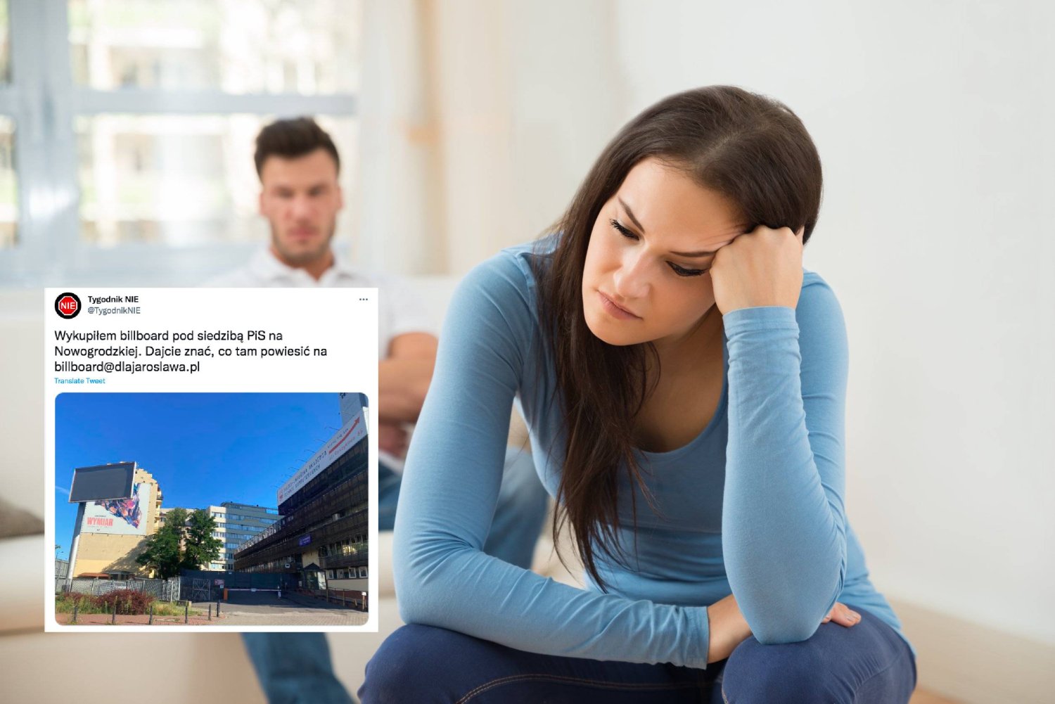 Dlatego też jeżeli nie jest wam obojętny los tej pary, reakcja ASZdziennika apeluje o podsyłanie własnych propozycji na adres wskazany w twitterowym wpisie: billboard@dlajaroslawa.pl