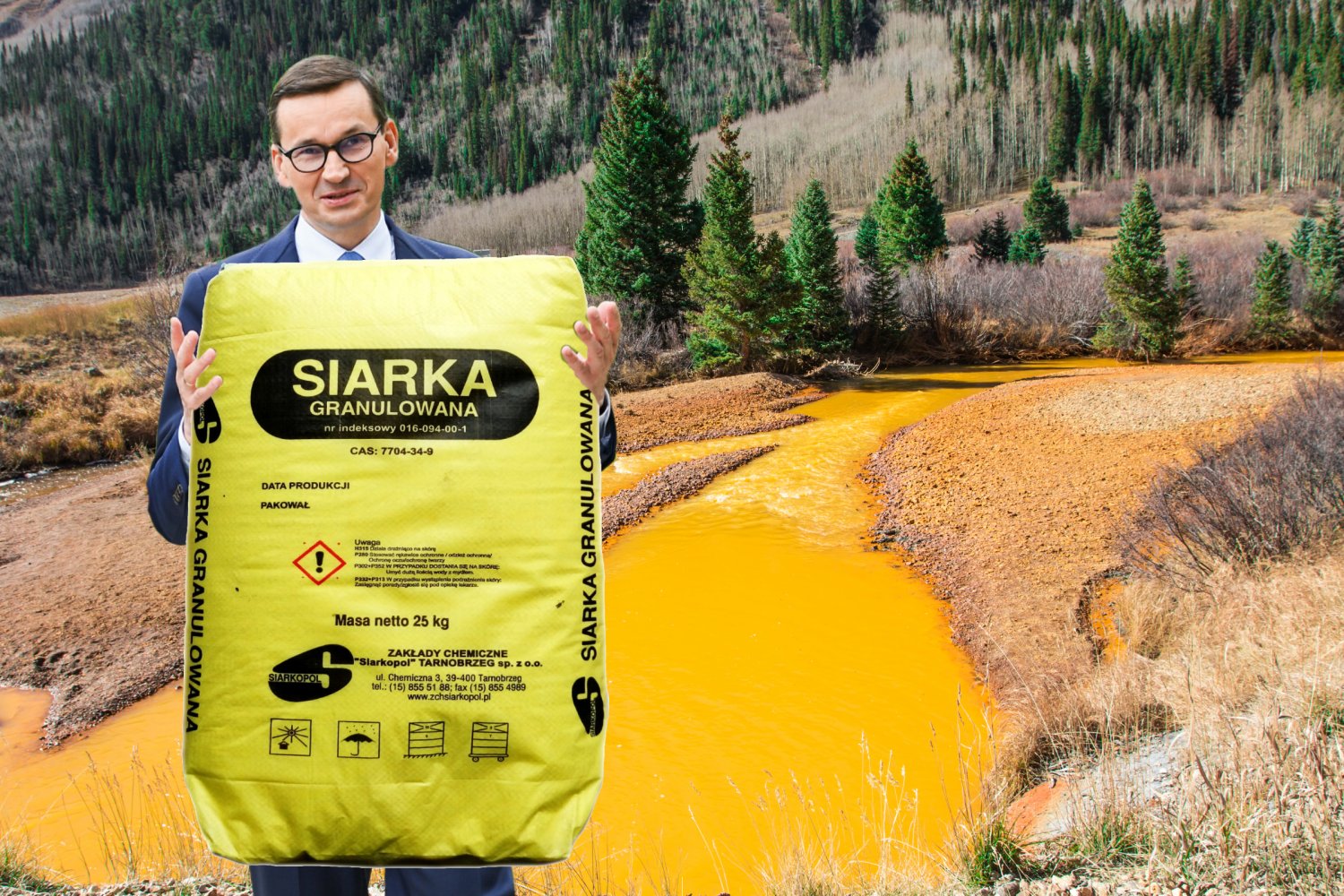 - Zleciłem samorządom skup wszystkich worków z granulowaną siarką - poinformował premier Morawiecki podczas konferencji prasowej. - Wysypią proszek bezpośrednio do rzeki i będą czekać, aż powstanie czerwony siarczek rtęci. Wtedy łatwiej im będzie go odłowić z wody. Podbierakami.