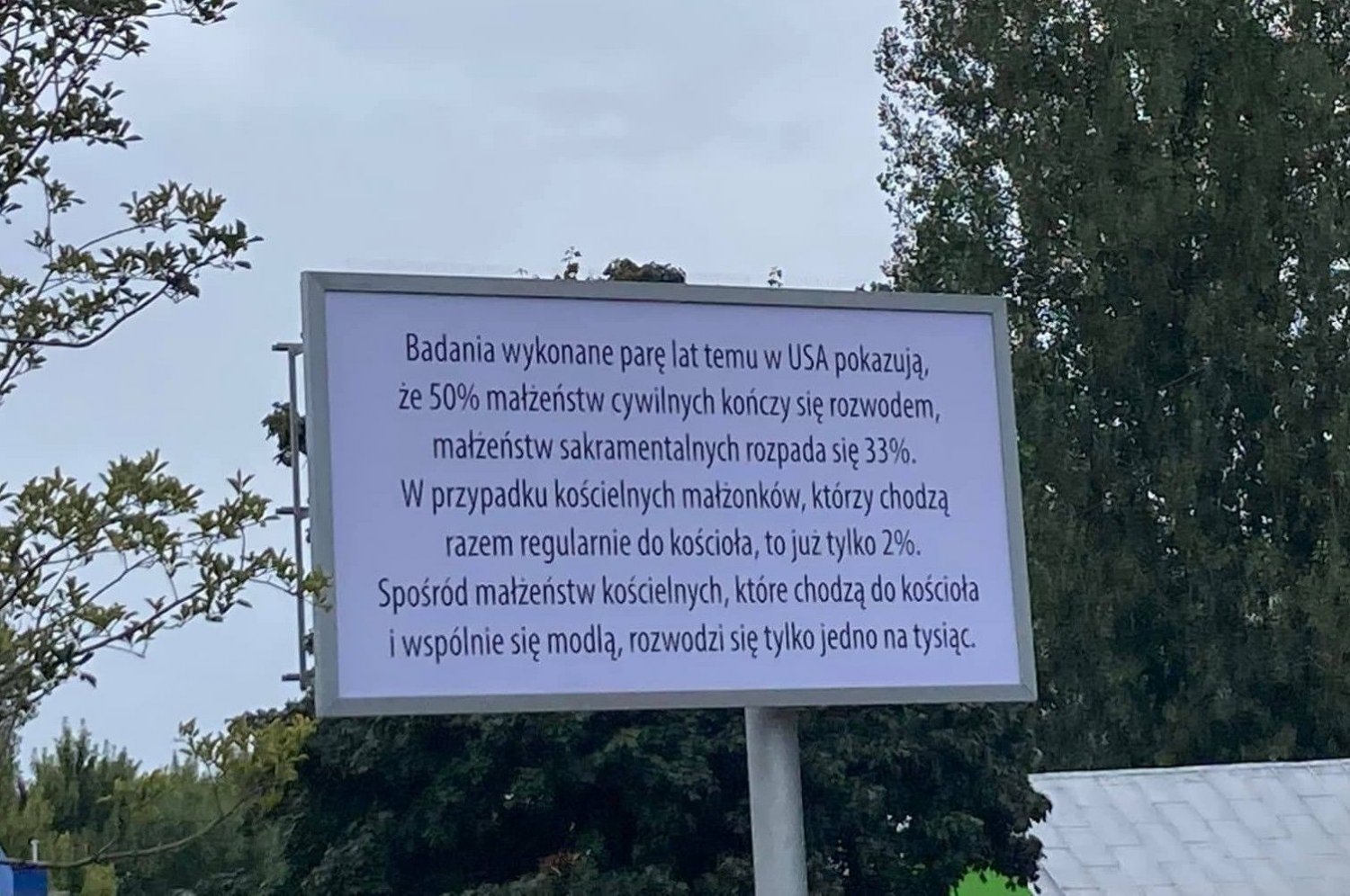 - Badania wykonane parę lat temu w USA pokazują, że 50 procent małżeństw cywilnych kończy się rozwodem, małżeństw sakramentalnych rozpada się 33 procent - czytamy na bilbordzie z nowej kampanii Fundacji "Nasze Dzieci". Ciekawe!