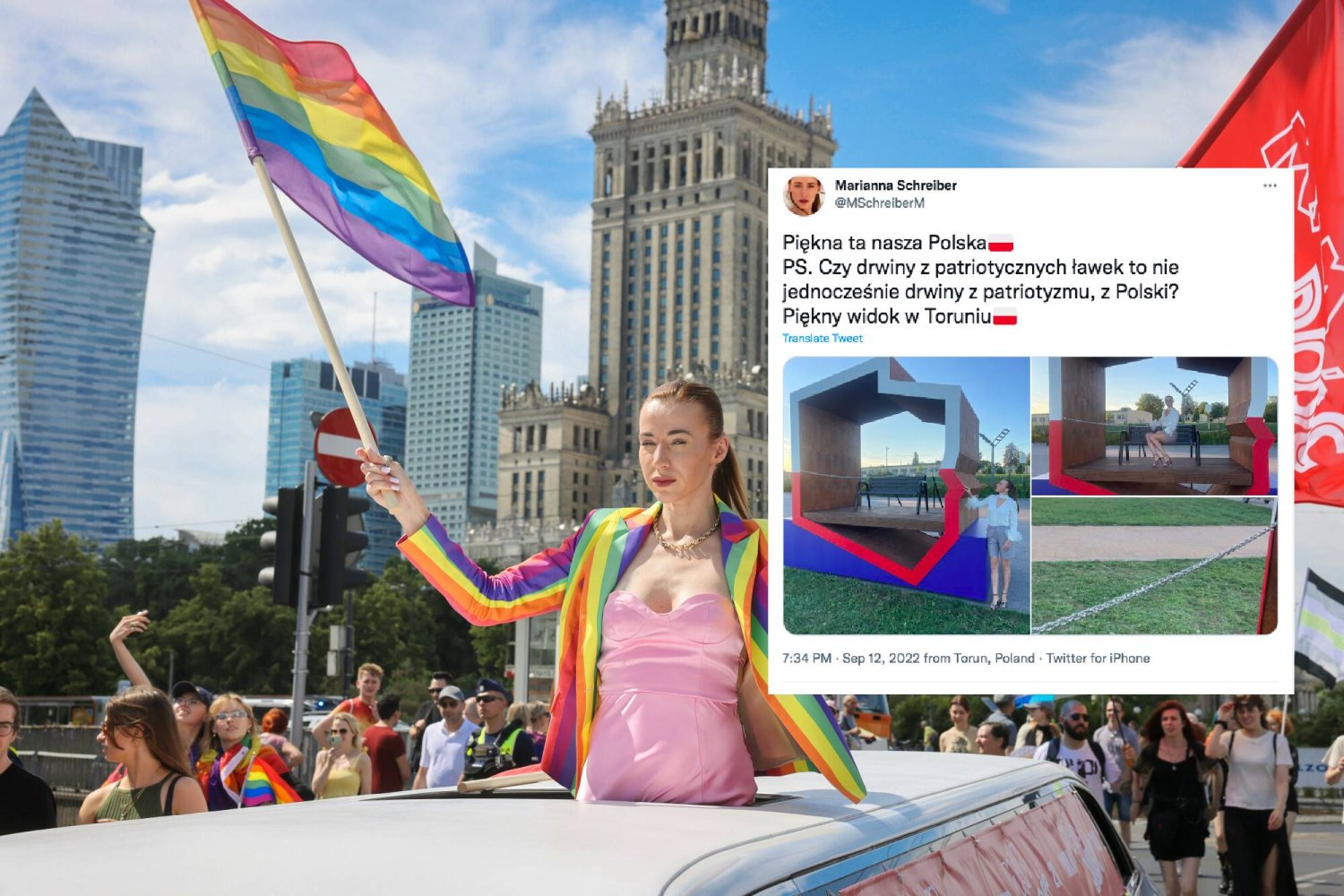 - Piękna ta nasza Polska - zauważa Marianna Schreiber na Twitterze, a następnie pyta o ukryte znaczenie drwin z patriotycznych ławek.
