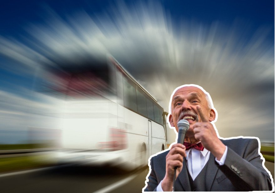 4. W autobusie jedzie 100 osób niegłosujących na Konfederację, a w aucie 1 lider Konfederacji. Czyją winą są korki i który pojazd powinien w nich stać? 5. Jeśli po ulicy jedzie 100 aut i 100 autobusów, to z jaką prędkością jedzie komunistyczny zbrodniarz?