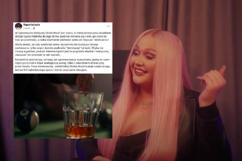 Polska raperka Oliwka Brazil rapuje w swoim nowym singlu o tym, że seks jest bardzo spoko - niezależnie od sposobu jego uprawiania, miejsca, czy orientacji. No i to jest OK. Uwagę zwraca jednak teledysk i jedna ze scen, w której kobieta dodaje mężczyźnie do drinka pigułkę, by się z nim przespać. Ku*wa, czy kogoś tam pojebało?