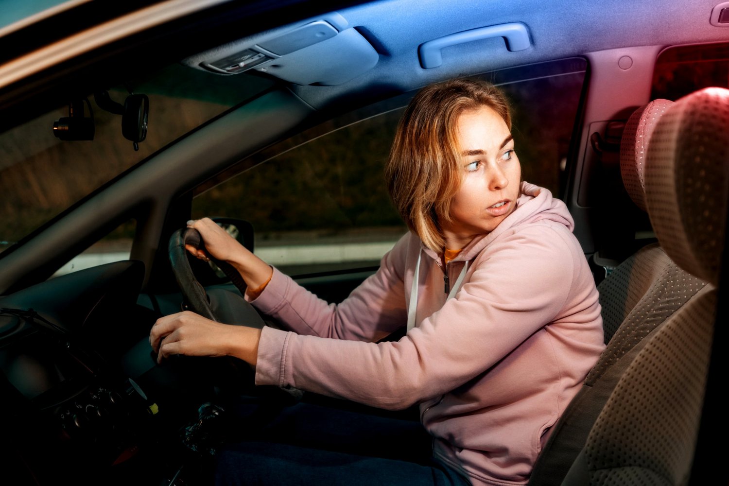 No dobra, to jeszcze tylko unik w kierunku siedzenia pasażera, bo właśnie maczeta przebiła dach nad głową kierowczyni!