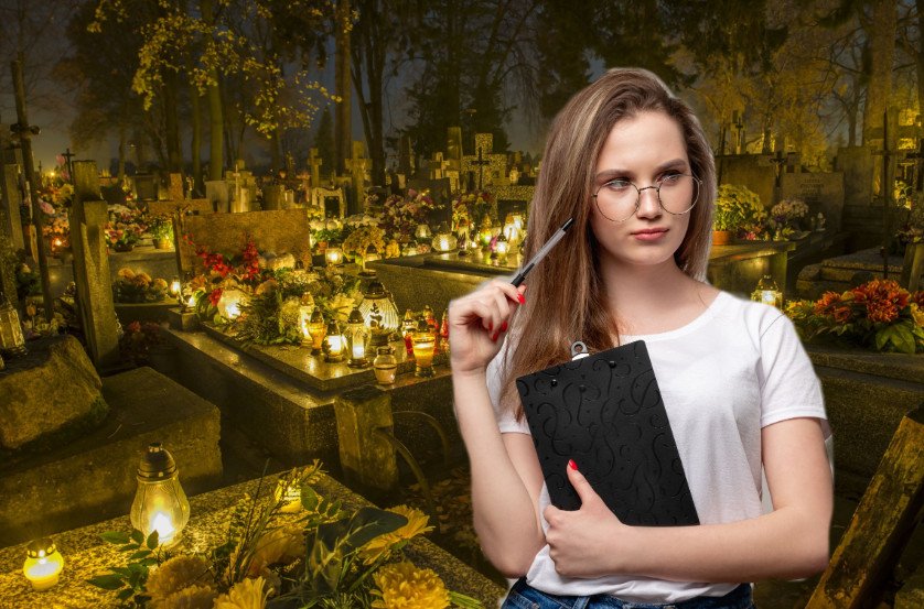 Przez cały rok ćwiczyła na grobowcu, który postawiła sobie w ogródku. Dobrze wiesz, że wstawała godzinę przed świtem i testowała ułożenie chryzantem, więc nie przewracaj oczami i rób zdjęcia tej wystrzałowej cmentarnej rozpusty.