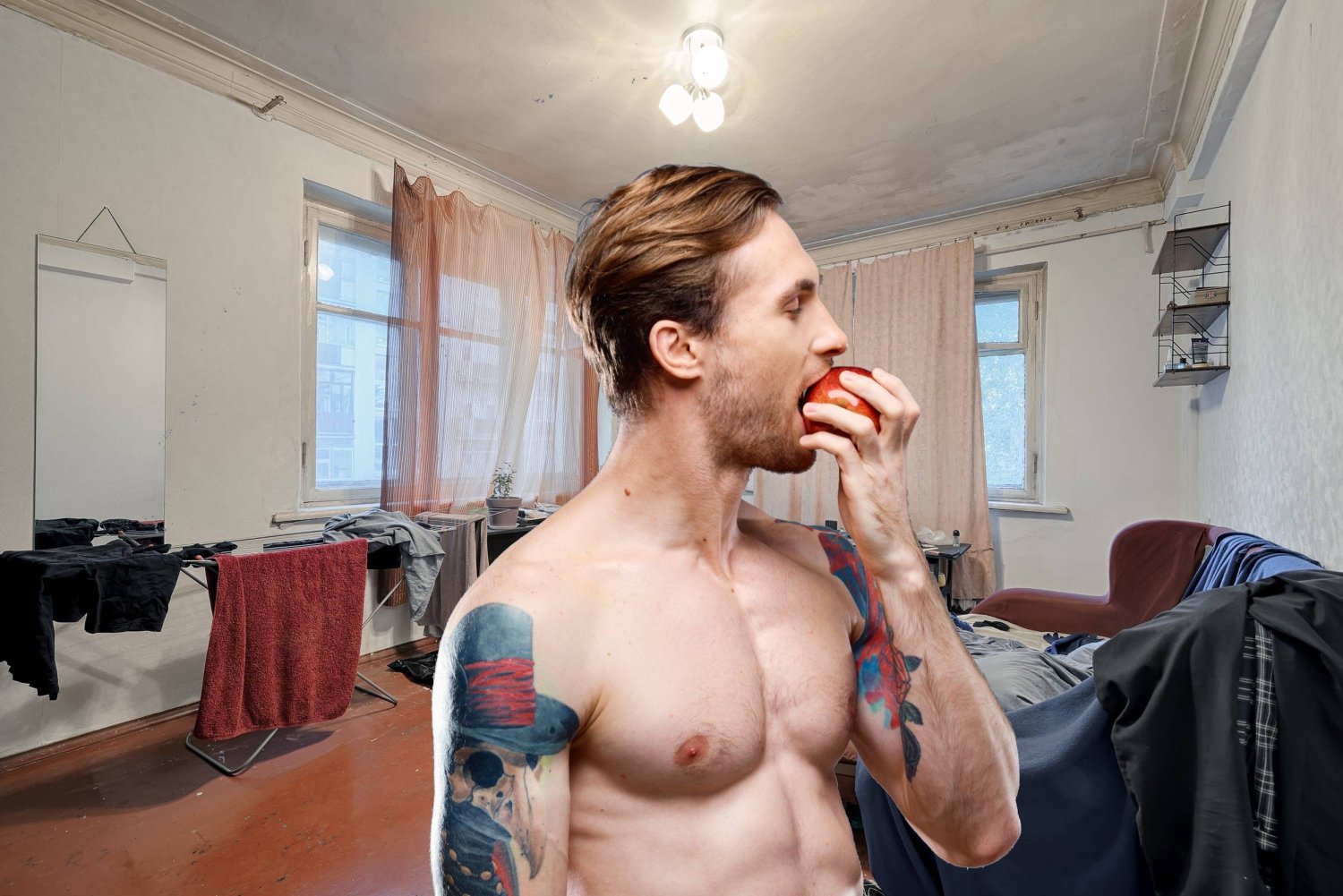 I zjadł jabłko, częstując przy okazji dziewczynę. Nagle otworzyły im się oczy i poznali, że są beznadziejnymi współlokatorami i schowali w dłoniach swoje zawstydzone twarze.